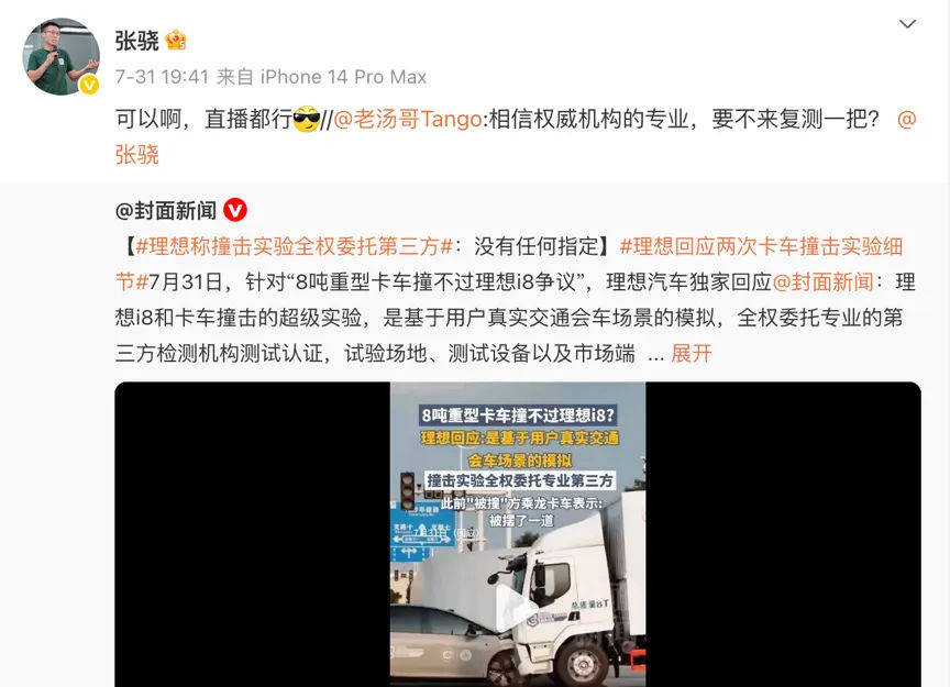 2025年7月29日,在理想全新纯电SUV i8的发布会上,一段连环撞击测试视频引发热议。