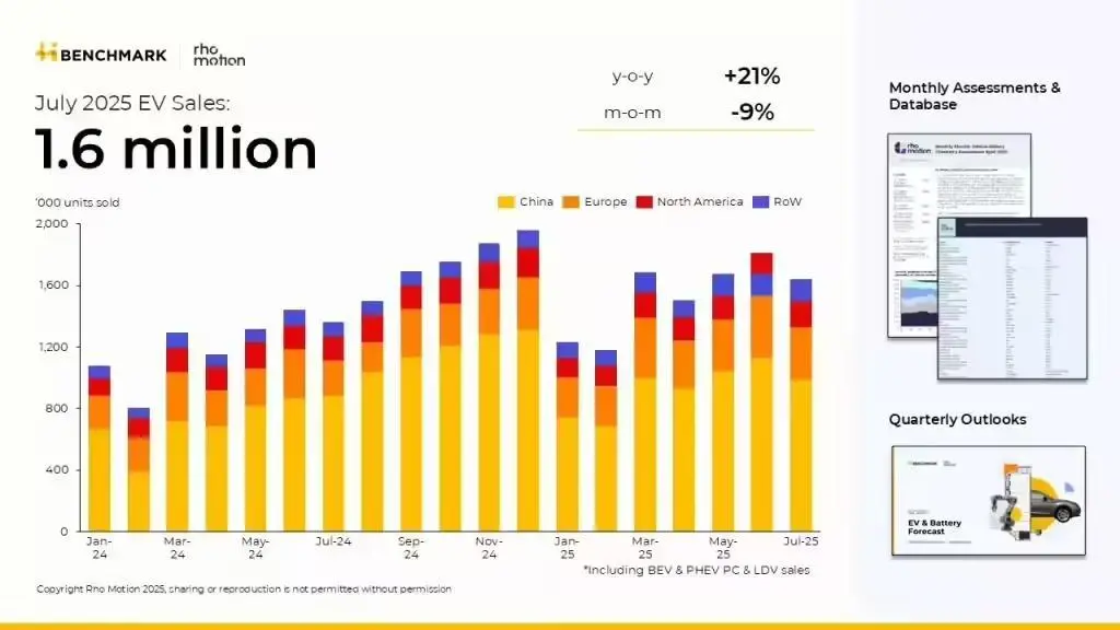 RHO Motion 指出,2025 年大西洋以西的电动汽车市场增长较为缓慢。美国面临政策阻力,而加拿大则出现了增长放缓。不过,该公司预计,随着 9 月《通货膨胀削减法案》(IRA)消费者税收抵免截止日期的临近,美国需求将出现短期上升,随后可能会有所下降。尽管存在地区差异,但 2025 年电动汽车采用的总体趋势仍然强劲向上。