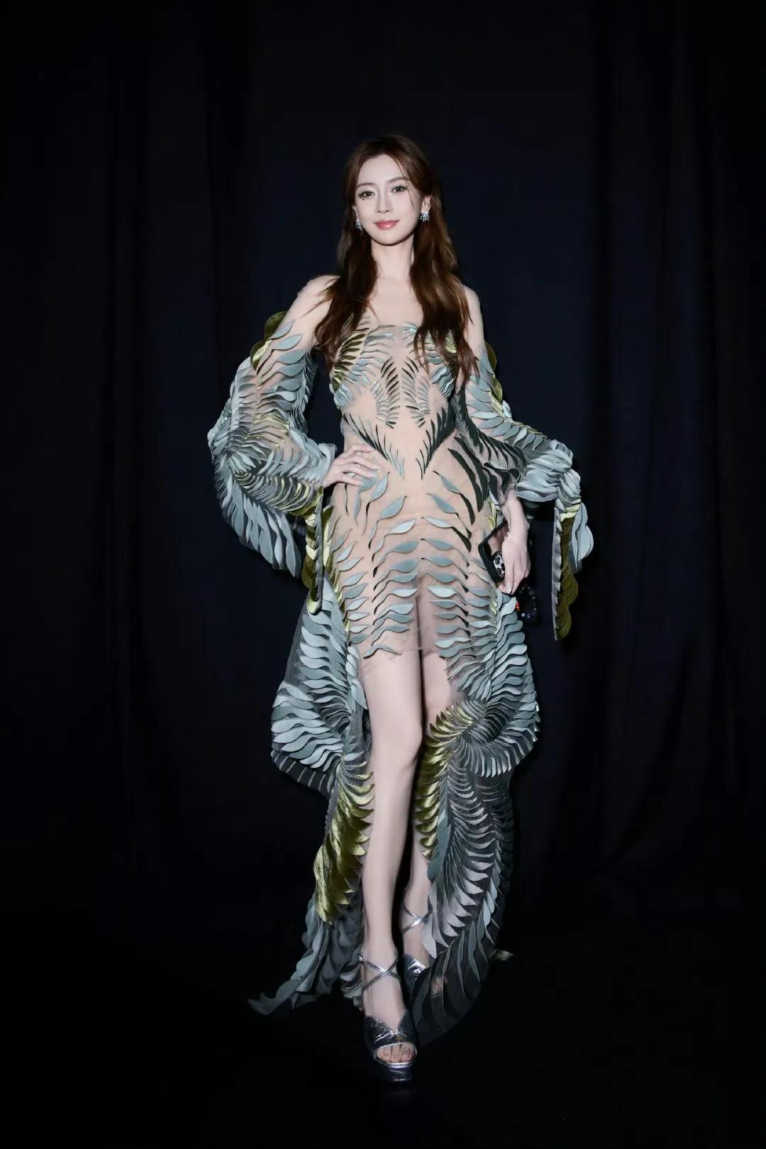 Angelababy在时尚方面的影响力可谓无人能敌,累计穿过22个品牌127套礼服,这次的造型被网友评为“孔雀公主