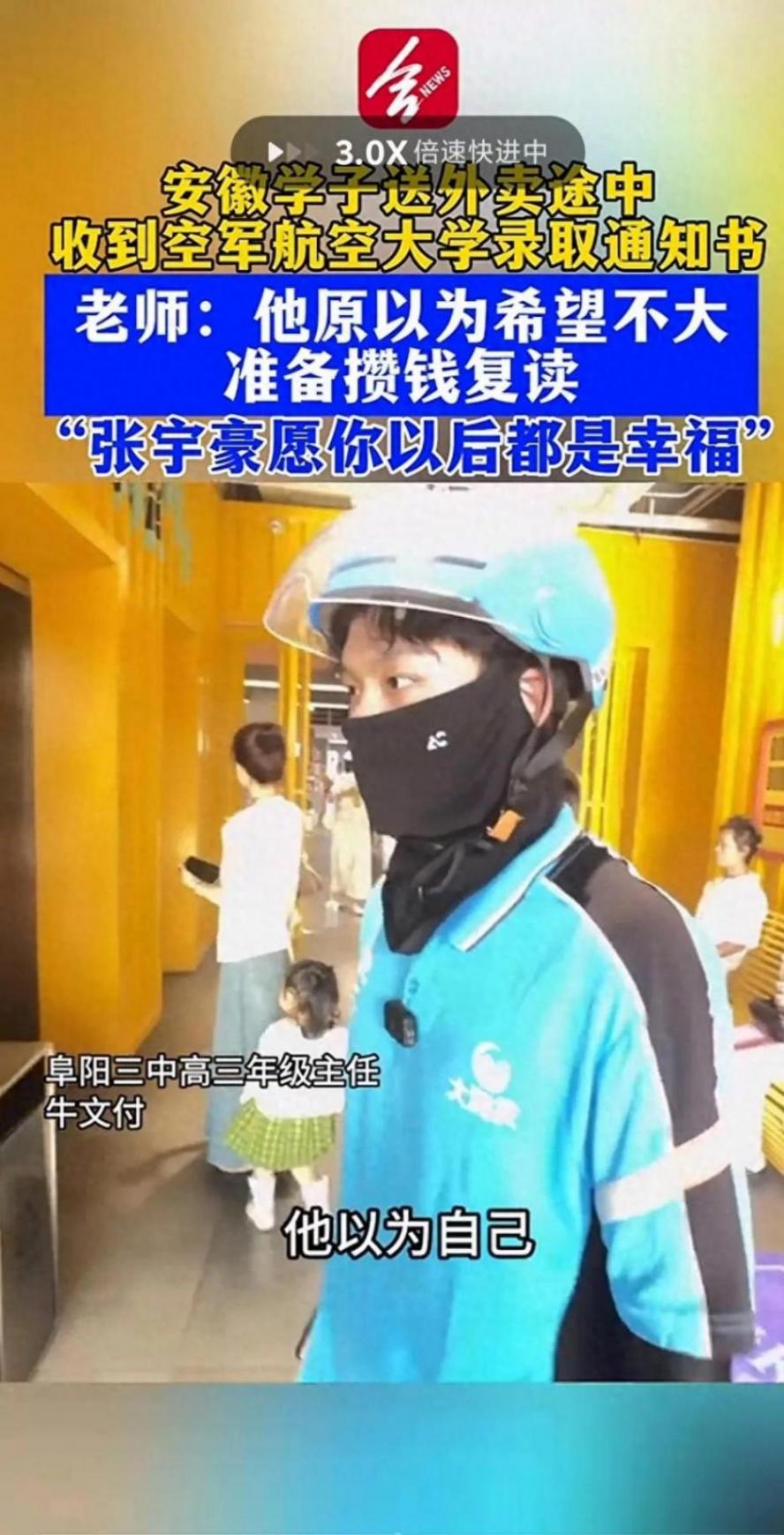 7月的合肥,午后的阳光把柏油路晒得发烫。19岁的李宇航骑着电动车穿梭在老城区的巷弄里,蓝色的外卖箱随着车身颠簸,里面装着一份刚取来的麻辣烫。手机导航提示还有300米到达目的地时,一阵急促的电话铃声突然响起,屏幕上跳动的“安徽省教育考试院”字样让他心里猛地一紧。