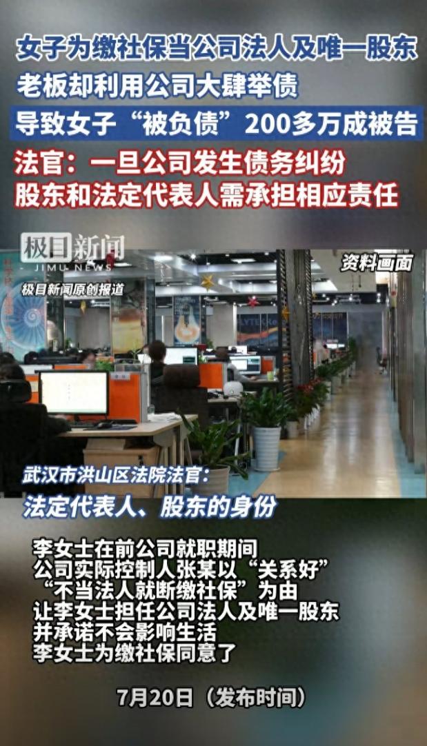 公司的实际控制人,也就是公司真正的老板,利用公司大举借贷,最后欠下了一屁股债,人也玩起了消失。债主们找不到实际借钱的人,一查公司资料,法定代表人是李女士!