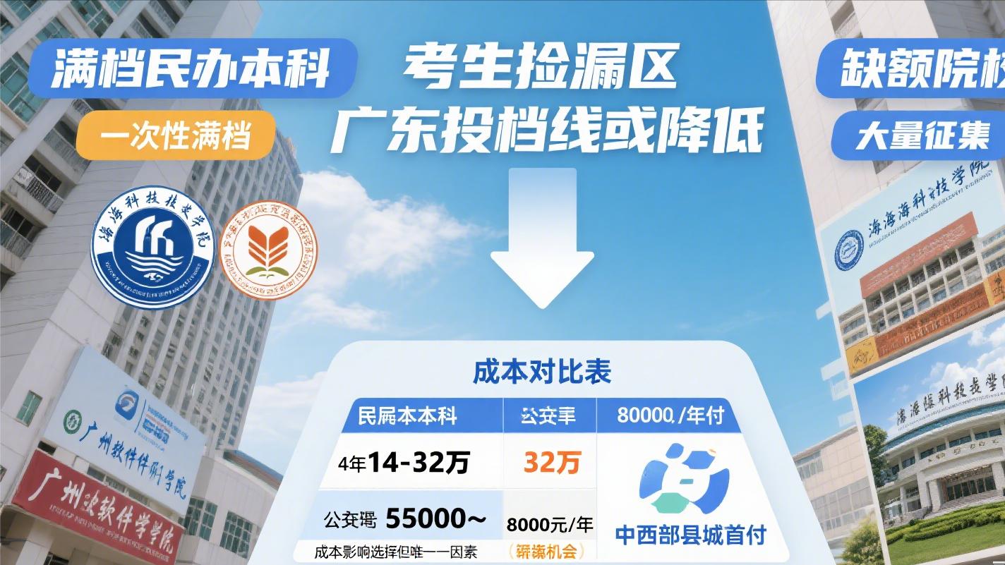 综合这些情况,不禁令人心生疑惑。北京和吉林在高考录取方面较为特殊,本科录取率向来较高,高考人数也较少,看不上民办本科似乎还能理解。然而,广东的情况却截然不同。从全国录取数据来看,广东的本科录取率不算高,高考人数也不算少,为何民办本科仍有如此多的差额呢?但现实并非所有民办本科都在遇冷。从广东省物理类投档数据中能够看到,民办本科中的头部高校珠海科技学院、刚过本科线就能上的广州软件学院和广州科技职业技术大学等高校都实现了一次性满档录取,考生对它们的认可度颇高 。这表明,高额学费虽会影响大家对民办本科的选择,但并非唯一决定因素。民办本科若想获得学生认可,还需从自身多做努力,否则可能持续面临如今这种招生困境 。