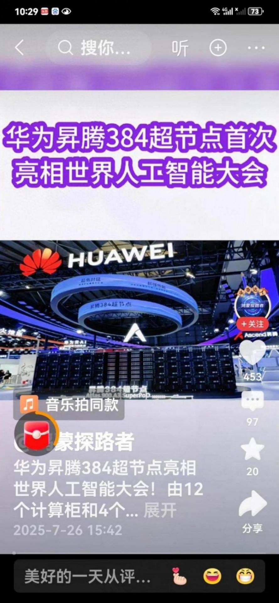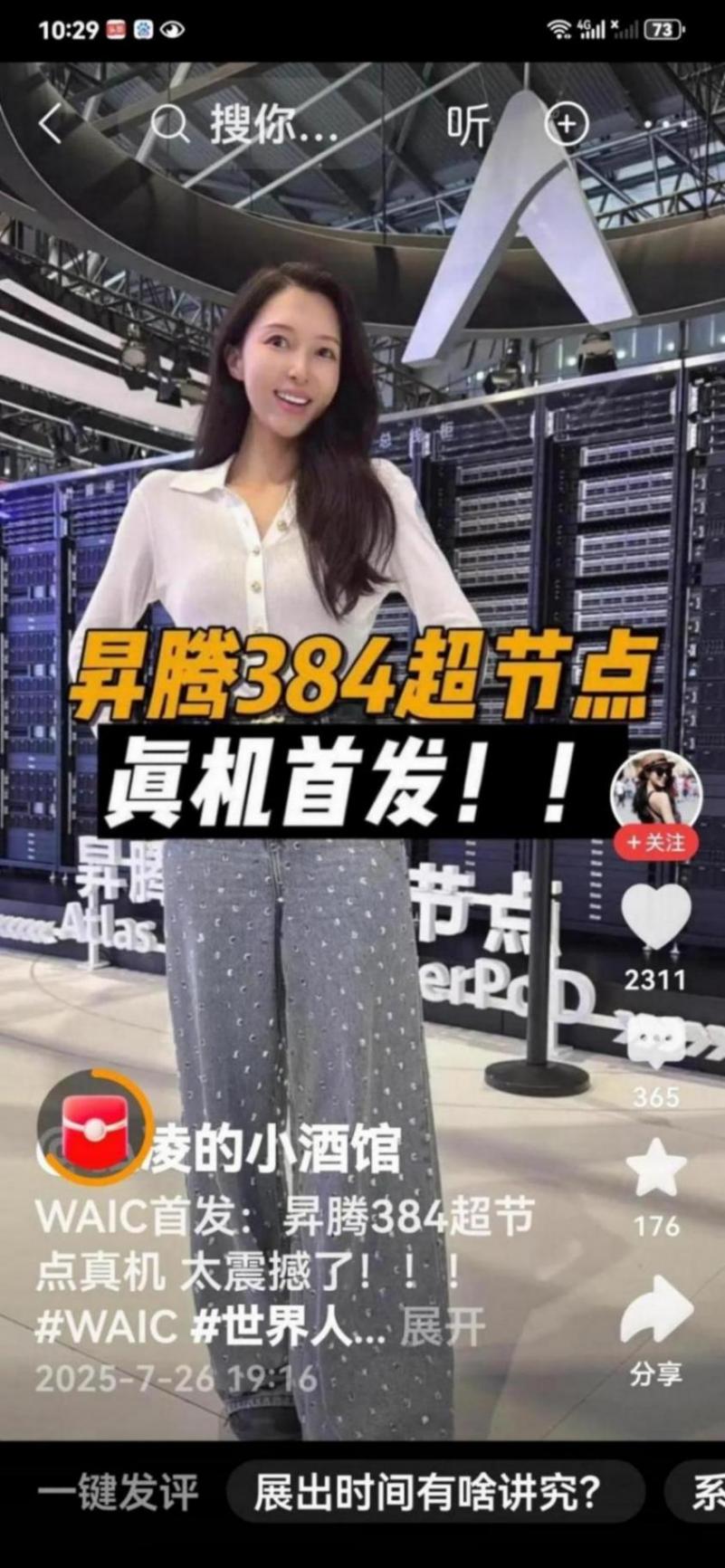 科技飞速发展的当下,算力已然成为了推动人工智能进步的核心驱动力。就在近日,第七届世界人工智能大会(WAIC 2025)在上海世博中心盛大开启,华为在此次盛会上扔下了一颗“重磅炸弹”——首次展出昇腾384超节点真机,这一亮相,瞬间成为全场焦点,更是获评“WAIC镇馆之宝”,在AI领域掀起了惊涛骇浪。