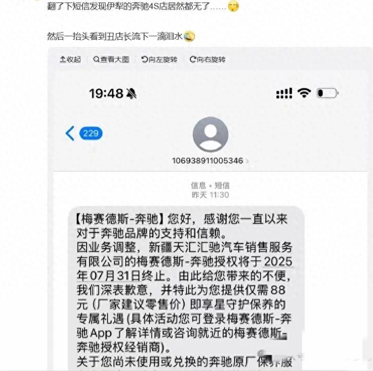 别慌!奔驰官方客服回应:车主可通过品牌官网查询附近在营4S店,转移保养、维修服务;若4S店突然关闭导致权益受损,可联系奔驰中国消费者服务热线,或通过当地消协、市场监管部门投诉。律师提醒:保留合同、付款凭证,是维权的关键。