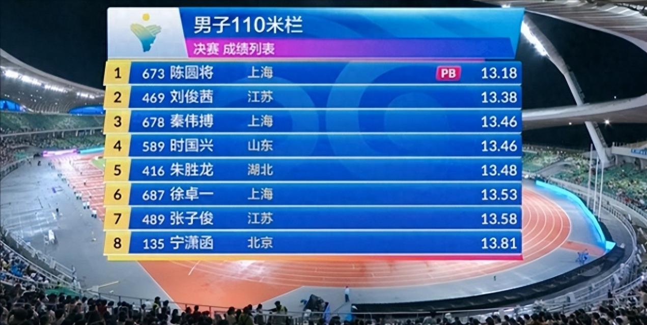 中国田径又一颗新星冉冉升起!在全国田径锦标赛男子110米栏决赛中,19岁的上海小将陈圆将一鸣惊人,以13秒18的惊艳成绩夺冠,不仅刷新个人最好成绩,更创造了今年国内该项目最佳战绩!