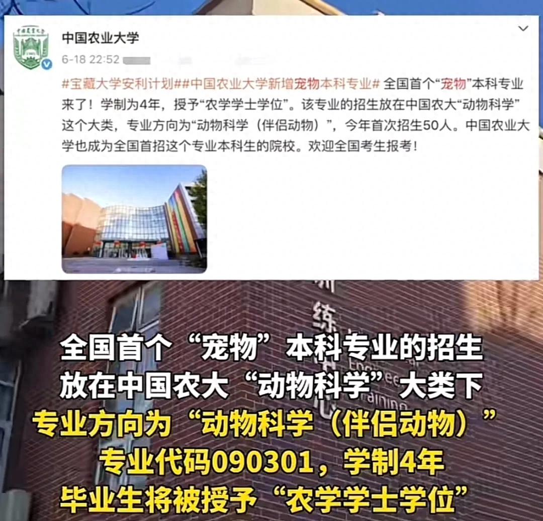 中国农业大学,今年会招收第一批伴侣动物科学方向的本科生,据说招收50人~