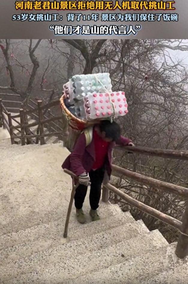 再说了,老君山的挑山工都有十几年经验,哪段路要歇脚、哪处石阶滑,闭着眼都知道,他们顺带还能帮游客指个路、扶一把,这可不是无人机能替代的服务。