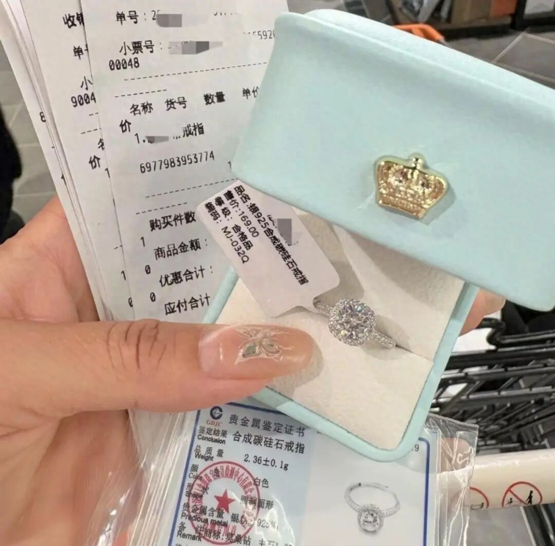 近日,多名网友发布视频称,自己在胖东来购买1克拉的“钻戒”只花了100多元。二手平台上,也有不少网友求购这款戒指。